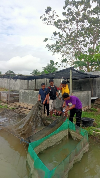 Mahasiswa Program Studi Akuakultur Unimuda Sorong melaksanakan panen perdana ikan nila di kolam English Village sebagai bagian dari kegiatan pembelajaran berwirausaha. Kegiatan ini memberikan pengalaman langsung kepada mahasiswa untuk mengelola budidaya sejak tahap awal, mulai dari persiapan kolam, penebaran benih, pengaturan pakan, pemantauan kualitas air, hingga proses pembesaran ikan. Panen perdana ini menjadi bentuk nyata keberhasilan mahasiswa dalam menerapkan ilmu akuakultur secara praktis. Selain aspek teknis, mahasiswa juga mempelajari dasar-dasar bisnis perikanan, seperti perhitungan biaya produksi, penentuan harga jual, serta strategi pemasaran ikan konsumsi. Melalui kegiatan ini, Prodi Akuakultur mendorong mahasiswa untuk mengembangkan jiwa kewirausahaan, meningkatkan keterampilan praktis, serta melihat peluang usaha di bidang budidaya ikan yang berpotensi menghasilkan nilai ekonomi bagi lingkungan kampus maupun masyarakat sekitar. Kegiatan ini diharapkan menjadi langkah awal bagi mahasiswa untuk tumbuh sebagai wirausahawan muda di sektor akuakultur.